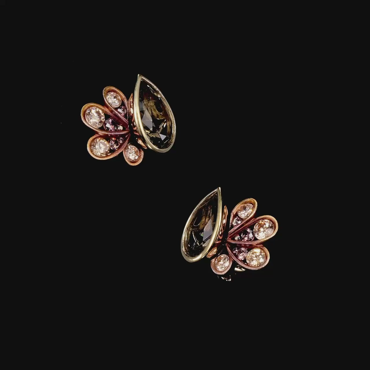 18k yellow gold vermeil with 14k gold earring posts, 443 laboratory-grown smokey quartz, green tourmalines and simulated champagne, brown and white diamonds.- £2,490.00