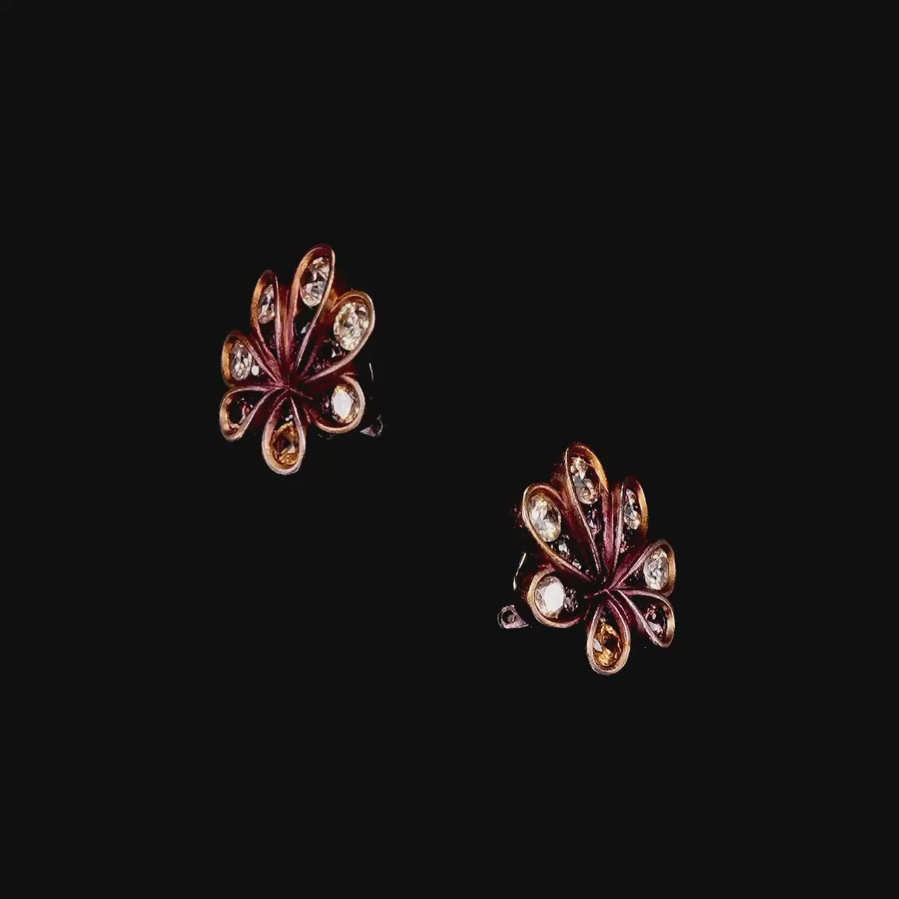18k rose gold vermeil, 14k gold posts with laboratory-grown and created gemstones including fuchsia pink sapphires, pink tourmalines, lilac amethysts, blush pink sapphires, champagne citrines, simulated chocolate, canary and white diamonds with hand-painted enamel and carved mother-of-pearl- From £1,390.00