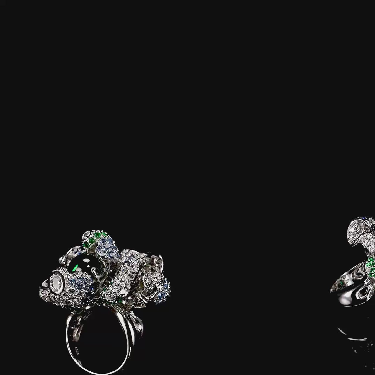 Black rhodium vermeil, 14k gold posts with laboratory-grown and created gemstones including royal blue sapphires, emeralds, and simulated grey and white diamonds Can be worn in 3 unique variations- £1,610.00
