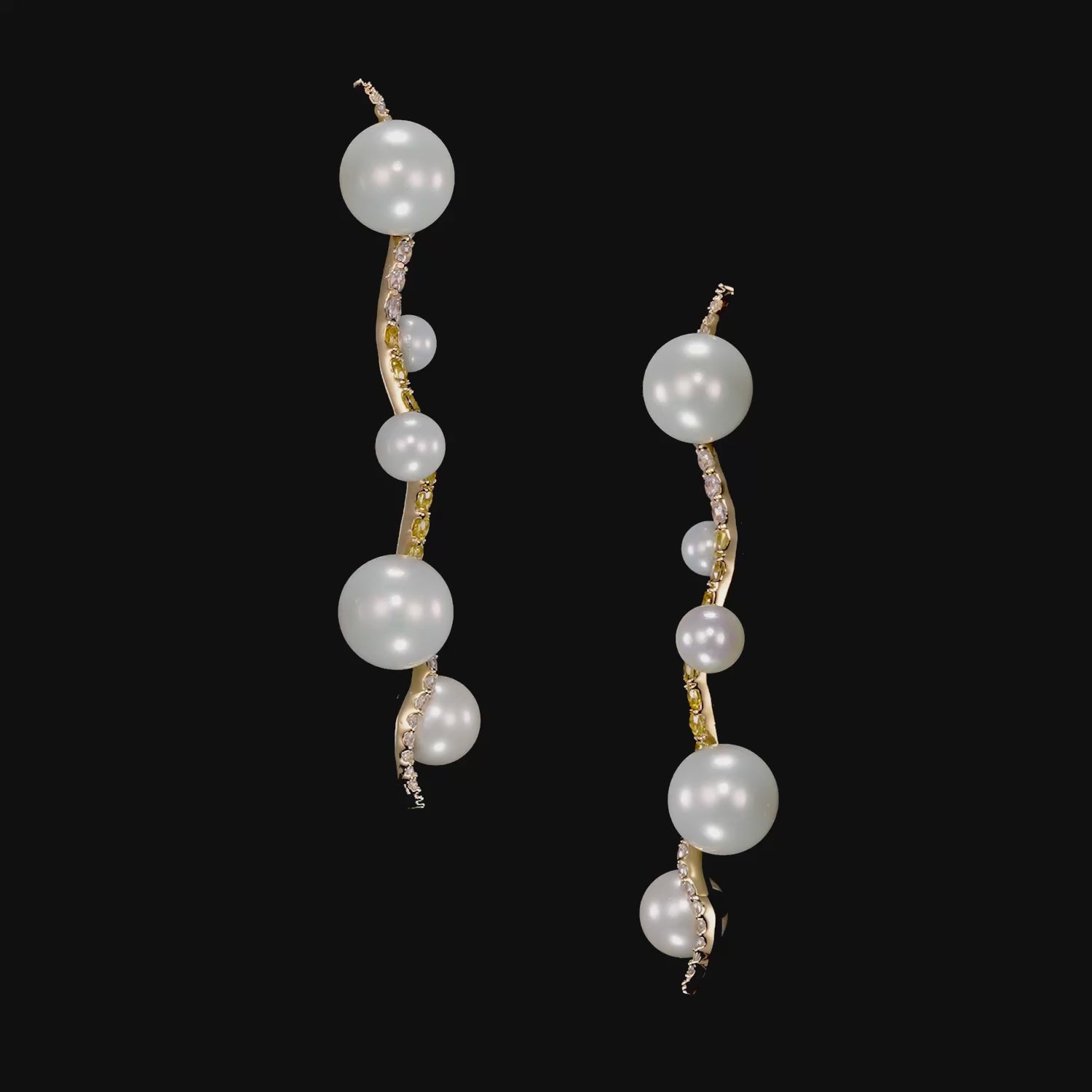 18k yellow gold vermeil, 14k gold earring posts with laboratory-grown simulated white and canary diamonds and freshwater pearls- £2,190.00