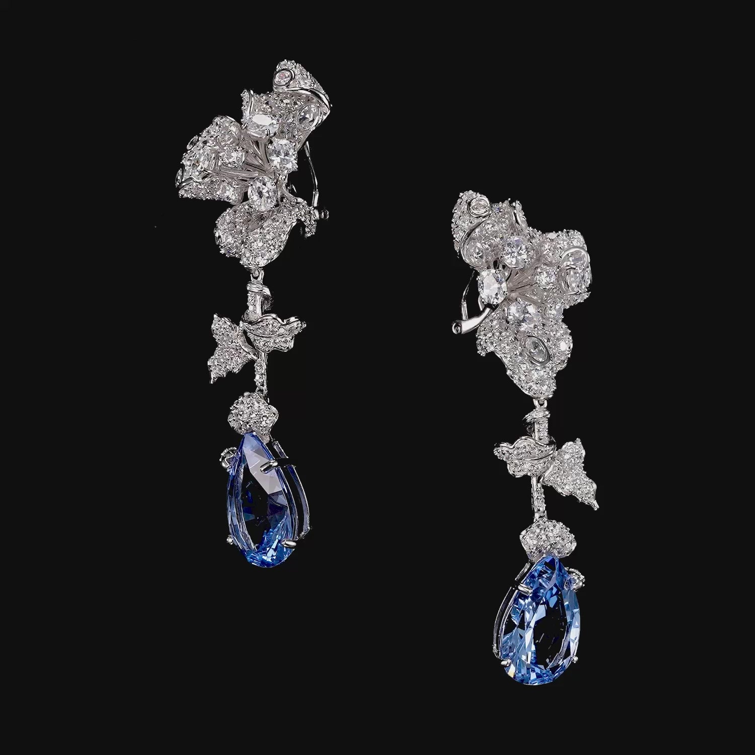 18k white gold and rhodium vermeil, 14k gold posts with laboratory-grown and created gemstones including fuchsia pink sapphires, Kashmir blue sapphires, blue spinels, blush pink sapphires, aquamarines, olive tourmalines, paraiba tourmalines and simulated white diamonds- From £1,790.00