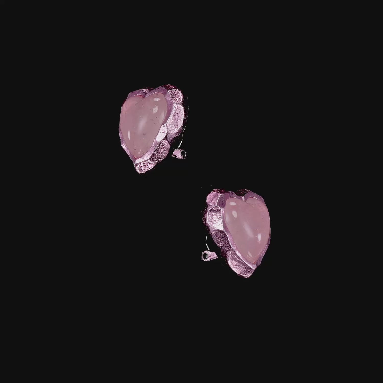 Regenerative™ rose quartz, anodised recycled aluminium, 14k gold earring posts.- £990.00