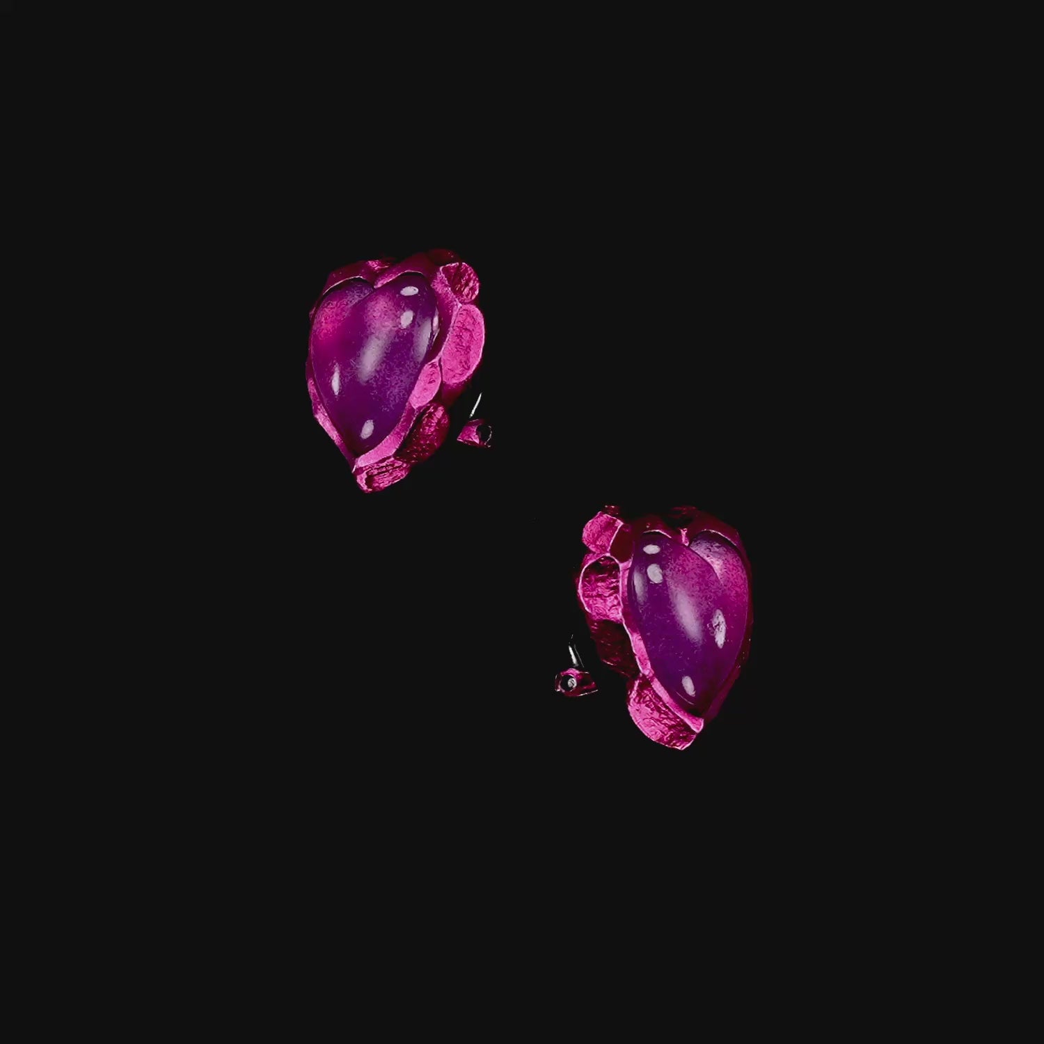 Purple Sweet Potato & Dragon-fruit Fruit Gems™, anodised recycled aluminium, 14k gold earring posts.- £990.00