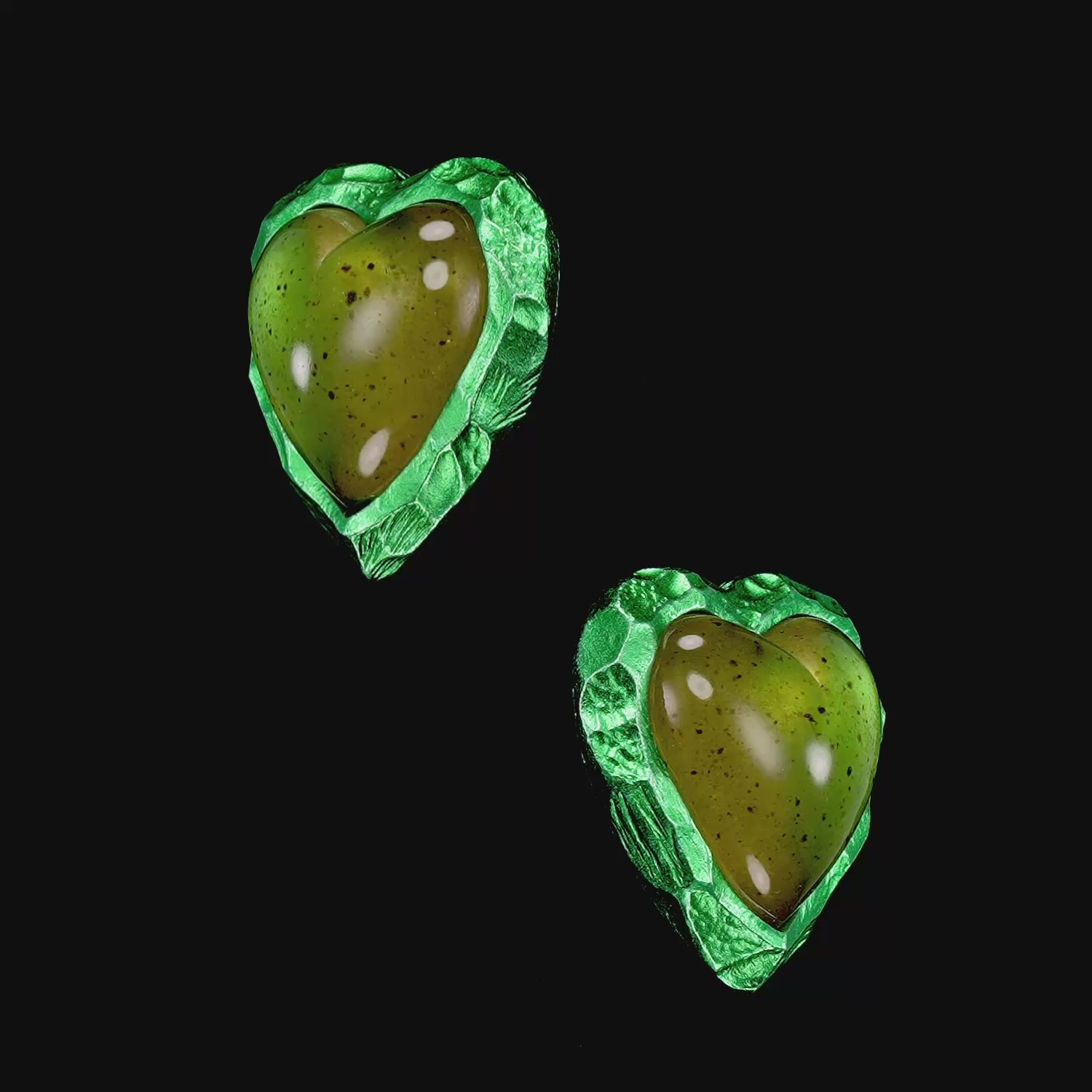 Spinach Fruit Gems™, anodised recycled aluminium, 14k gold earring posts.- £990.00
