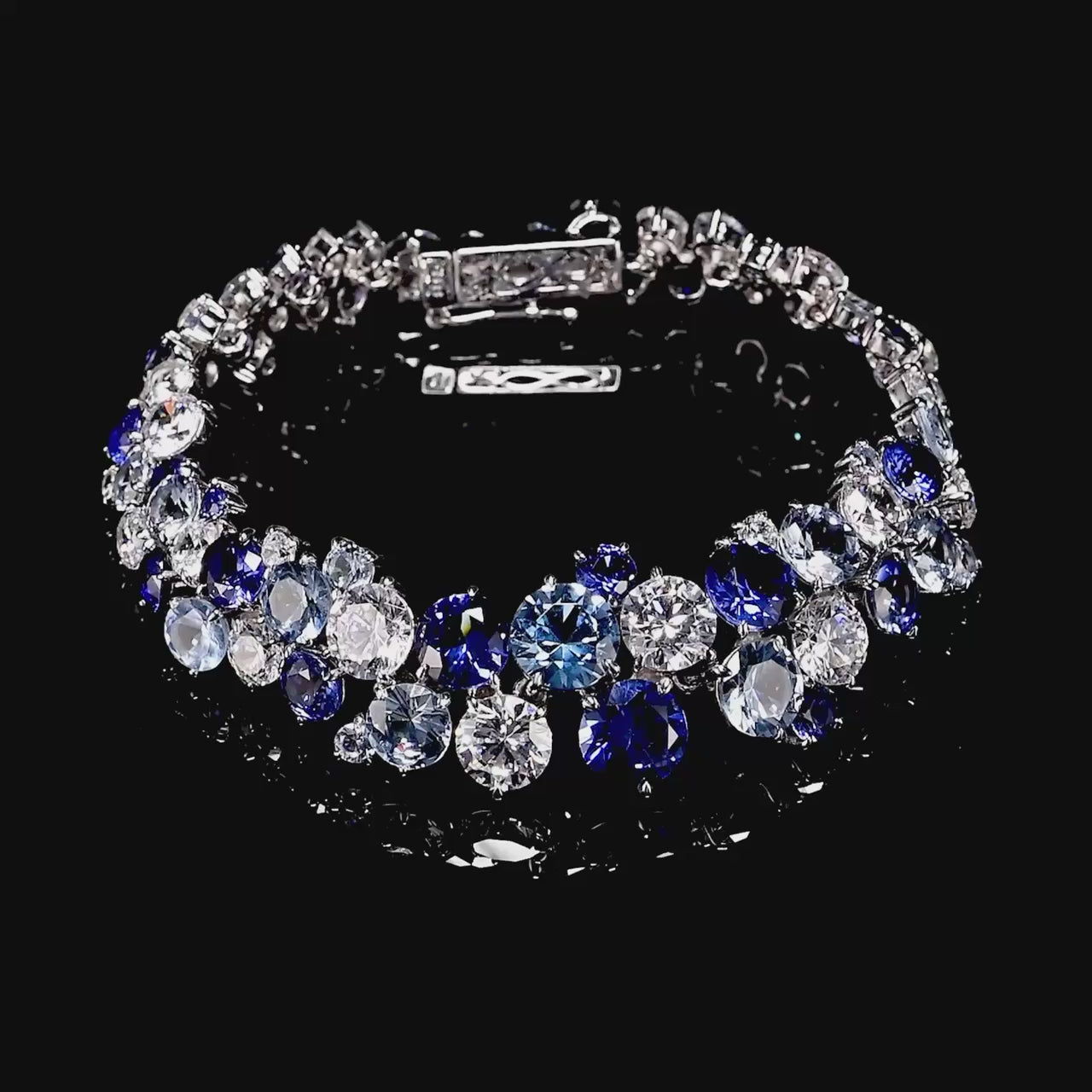 18k white gold and rhodium vermeil with laboratory-grown and created Kashmir blue sapphires and simulated white diamonds Hidden push-lock with safety clasp closure- £1,690.00
