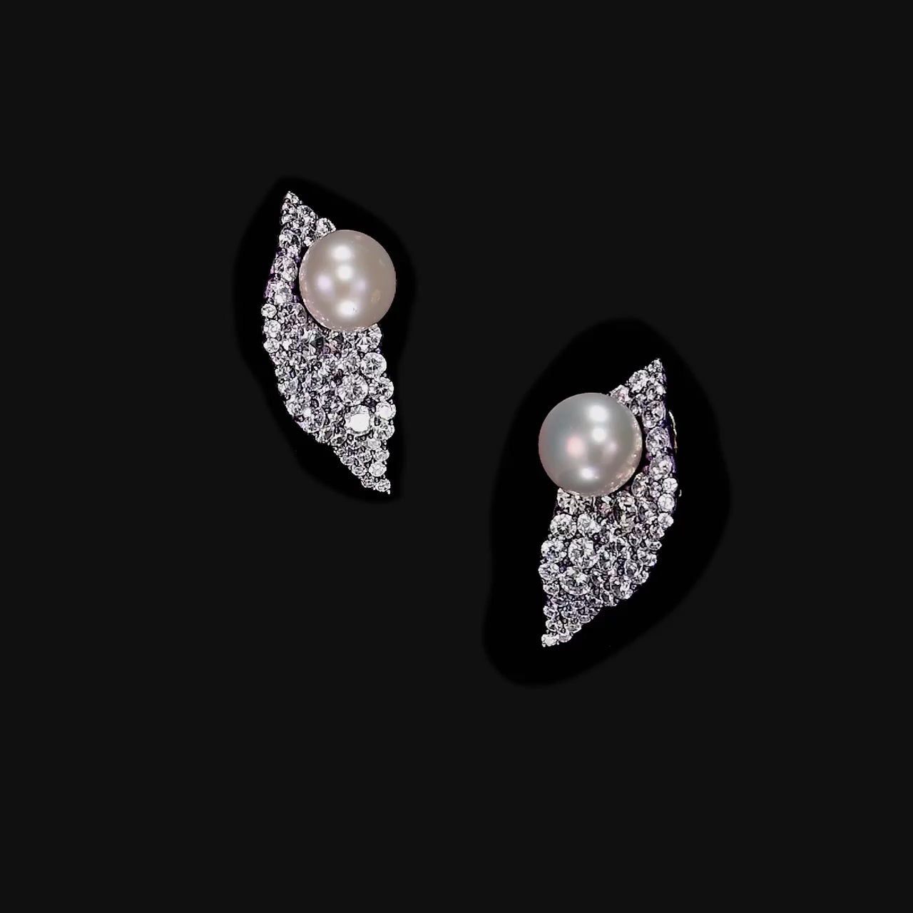 Black rhodium vermeil, 14k gold posts with 90 graduating freshwater pearls and 148 simulated white diamonds.- ¥613,000