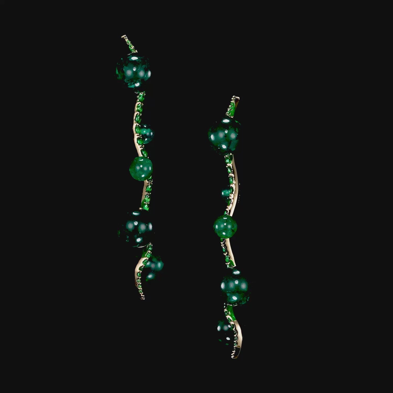 18k yellow gold, 14k gold posts with laboratory-grown emeralds, green tourmalines, simulated canary diamonds and regenerative green agate.- ¥642,900