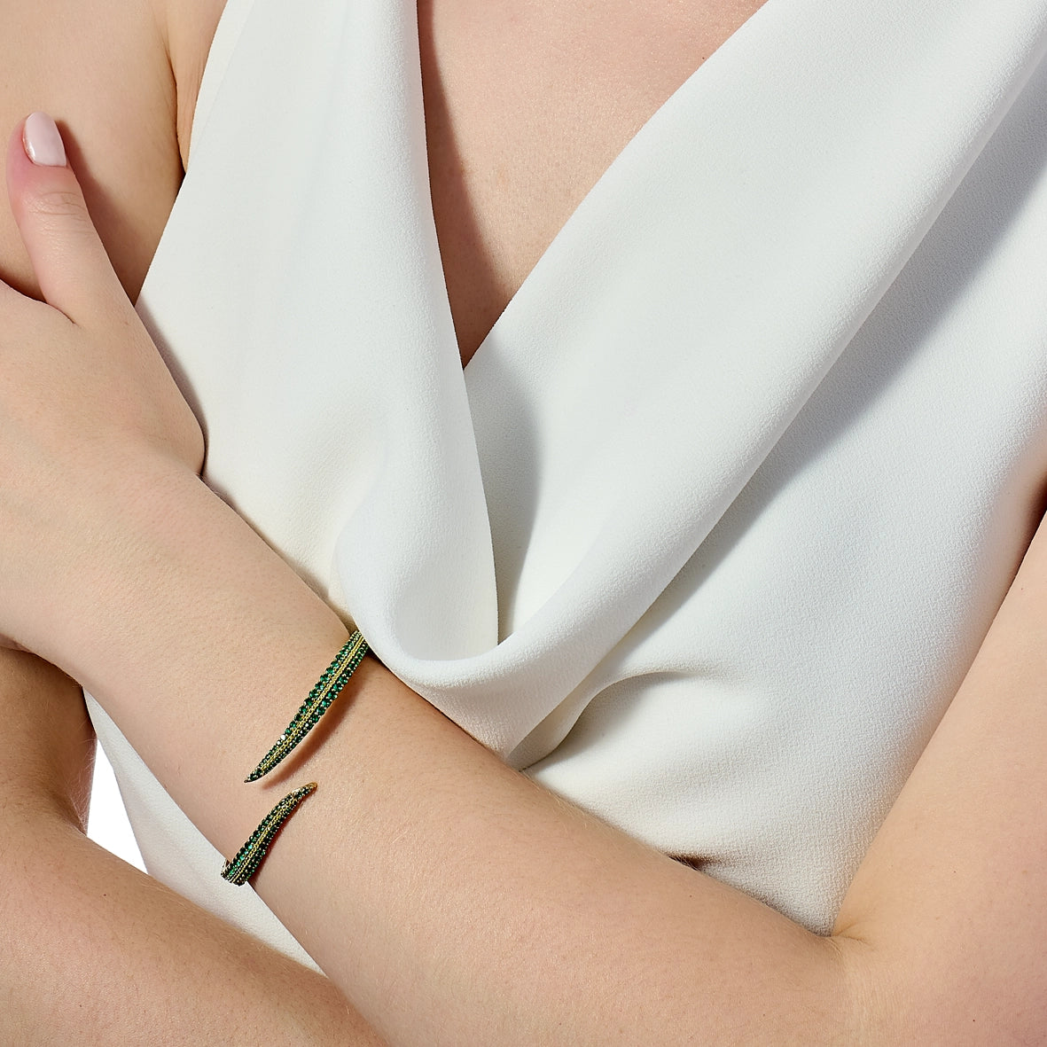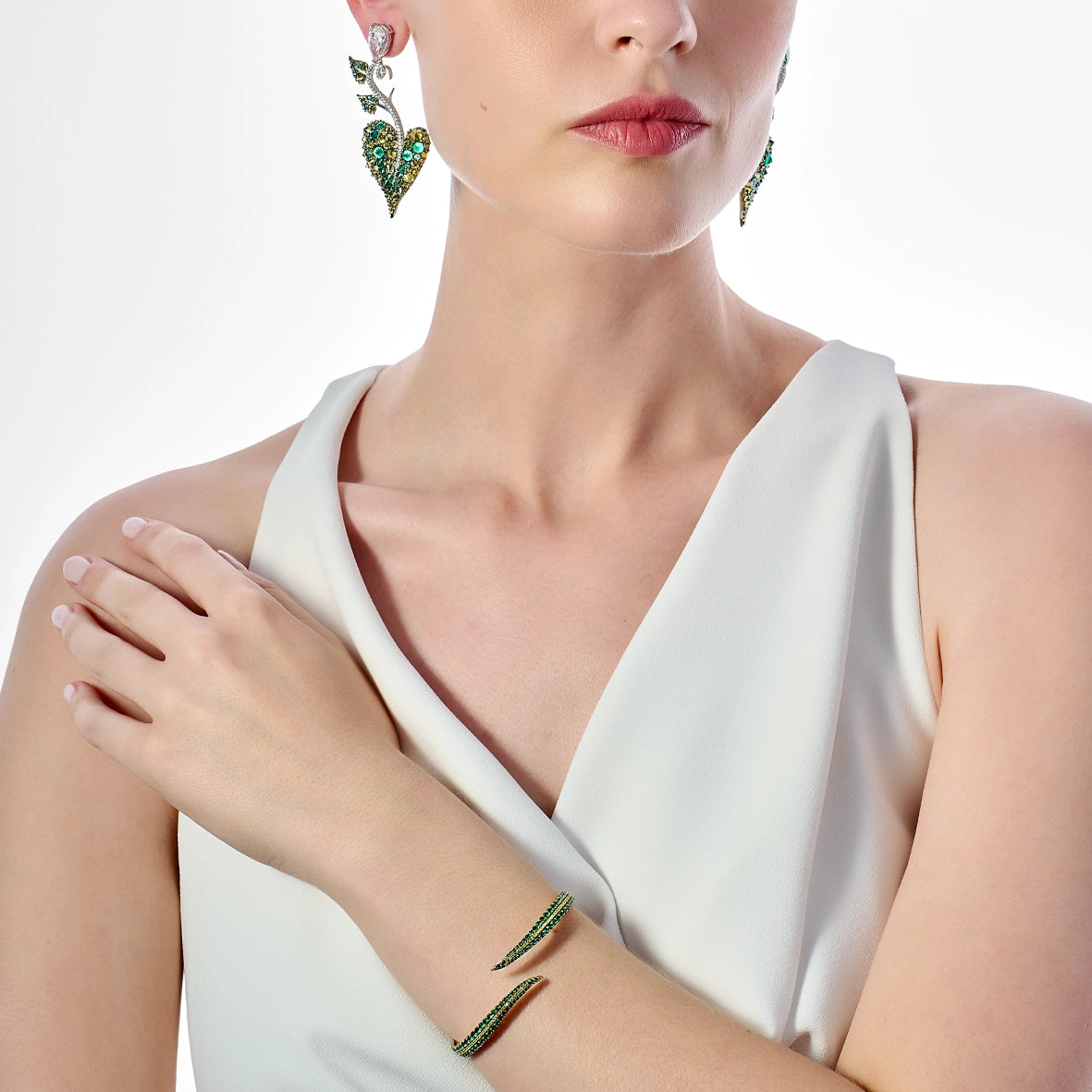 18k yellow gold vermeil with 290 laboratory-grown emeralds and peridots.