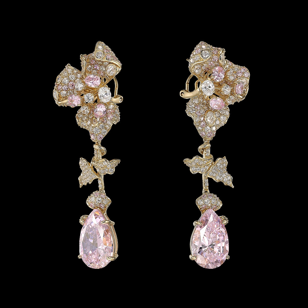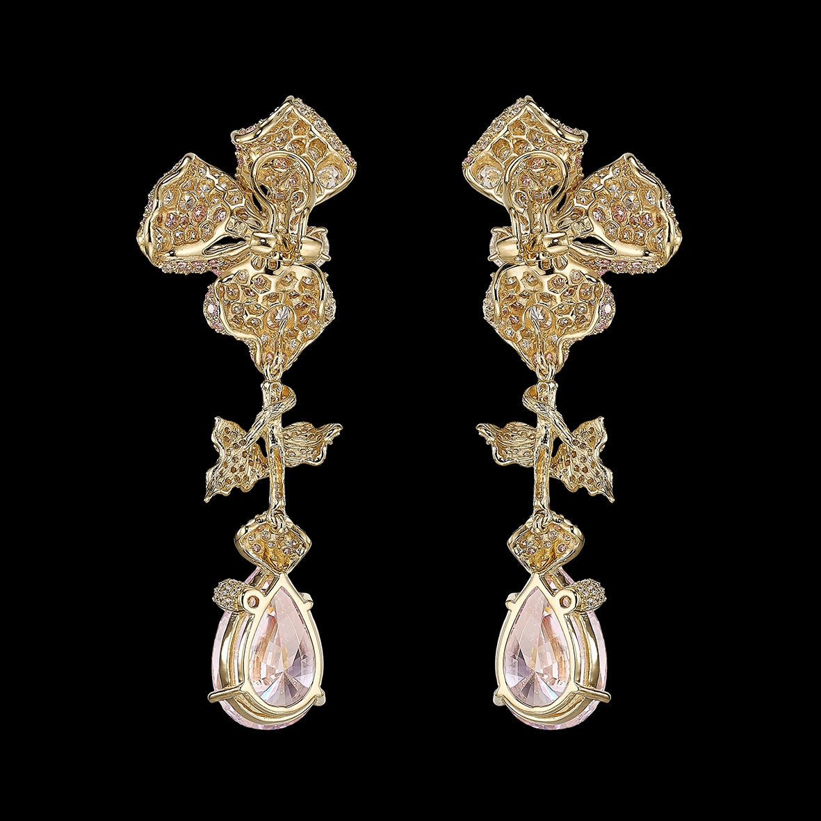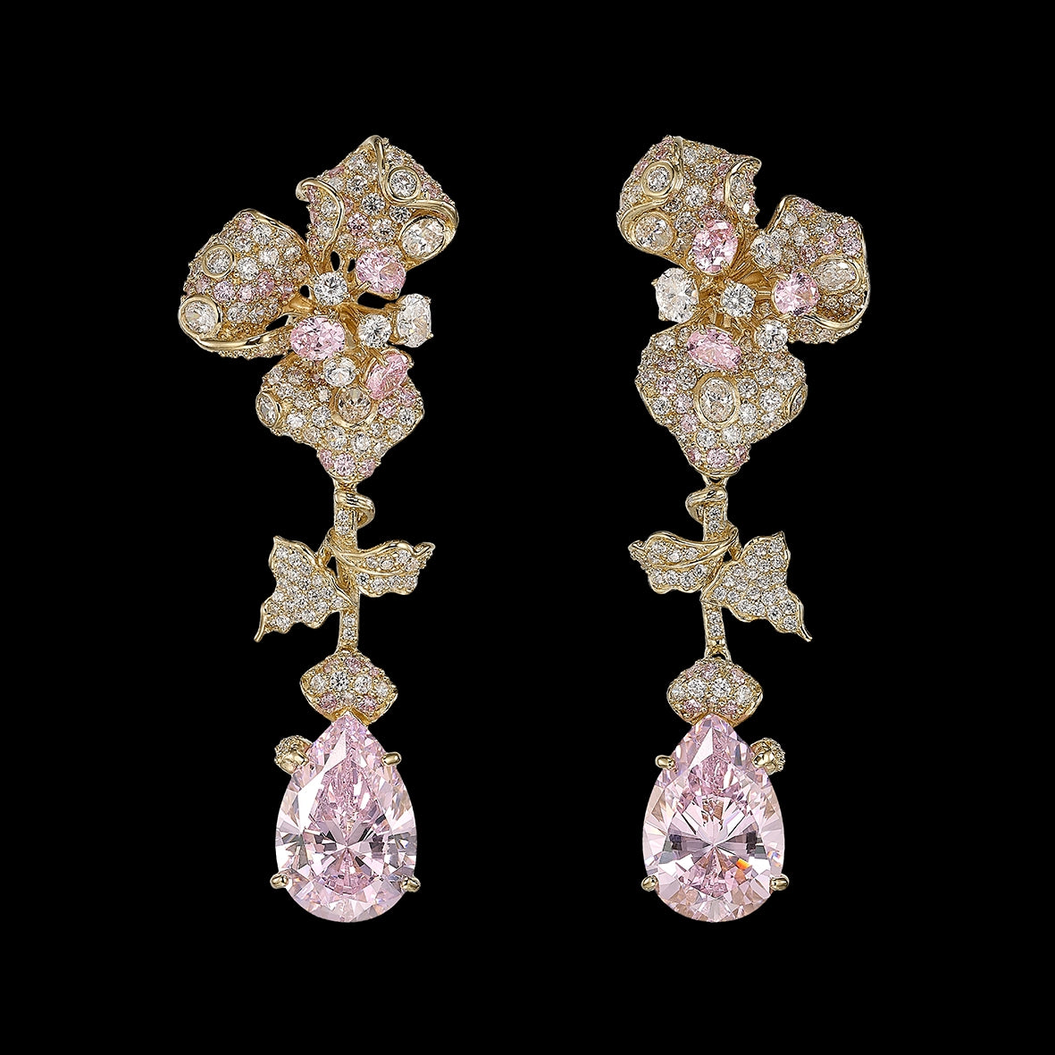 18k yellow gold vermeil, 14k gold earrings posts with laboratory-grown and created gemstones including simulated pink and white diamonds