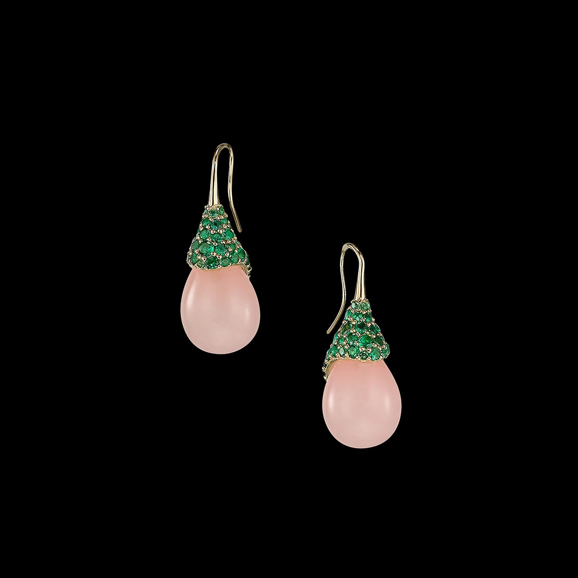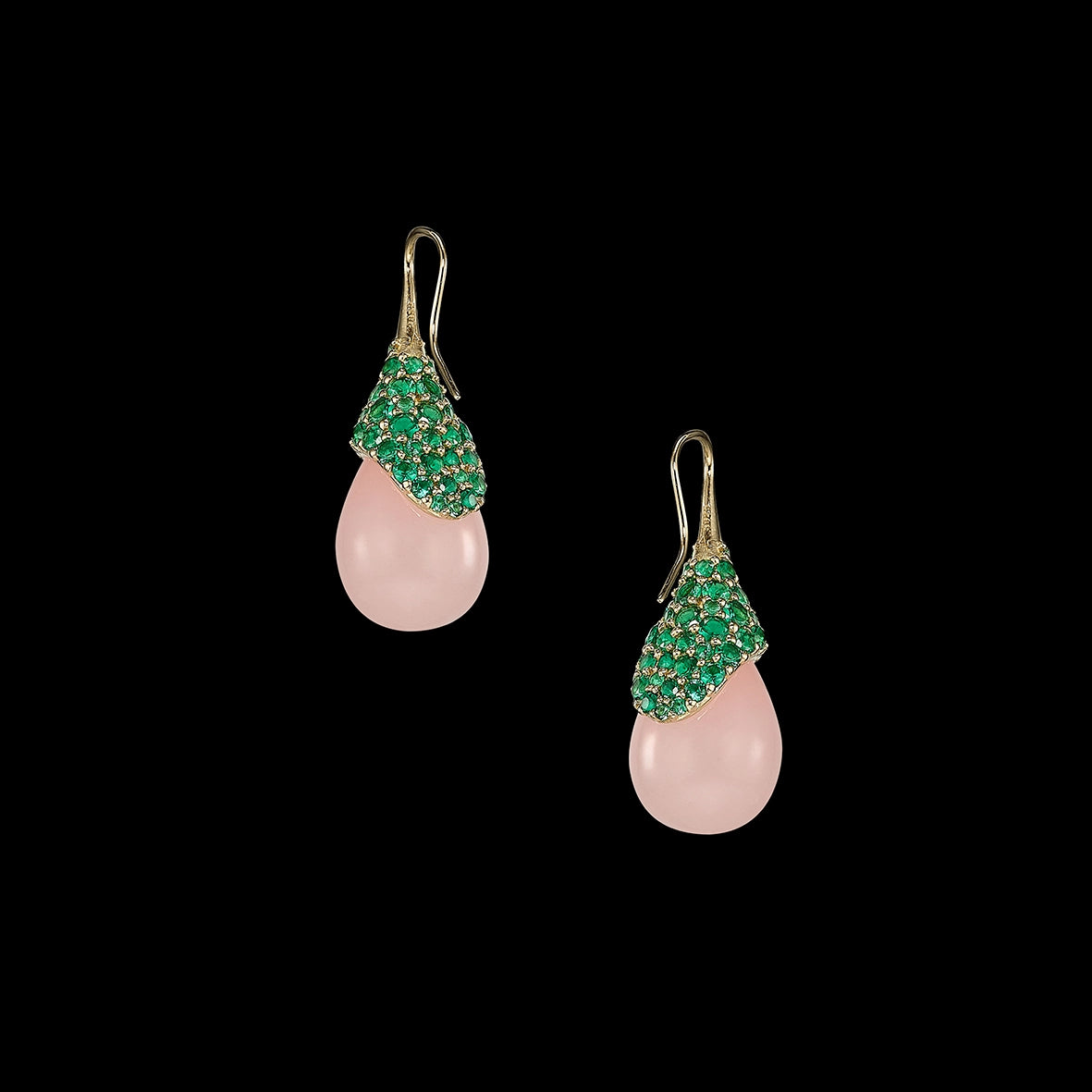 Regenerative™ rose quartz, 18k yellow gold vermeil, with laboratory-grown and created emeralds