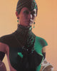 "Luxury" is where the jewellery leads and shines. The concept of a priceless piece, inspired by important historic Royal Jewels from the Maharajahs to the French Courts, Crowns to Sautoirs and the infamous Patiala Necklace, over 8000 custom-cut laboratory-grown gemstones from pigeon blood rubies, emeralds, lavender sapphires, canary, white and black diamonds totalling over 6600 carats. The question of worth in creations, beautifully curated displays, lighted perfectly by the window. Displays made for framing the work to justify its price transforms into flocked body armours to become part of the looks, a surrounding design to lure, a picture of desire.