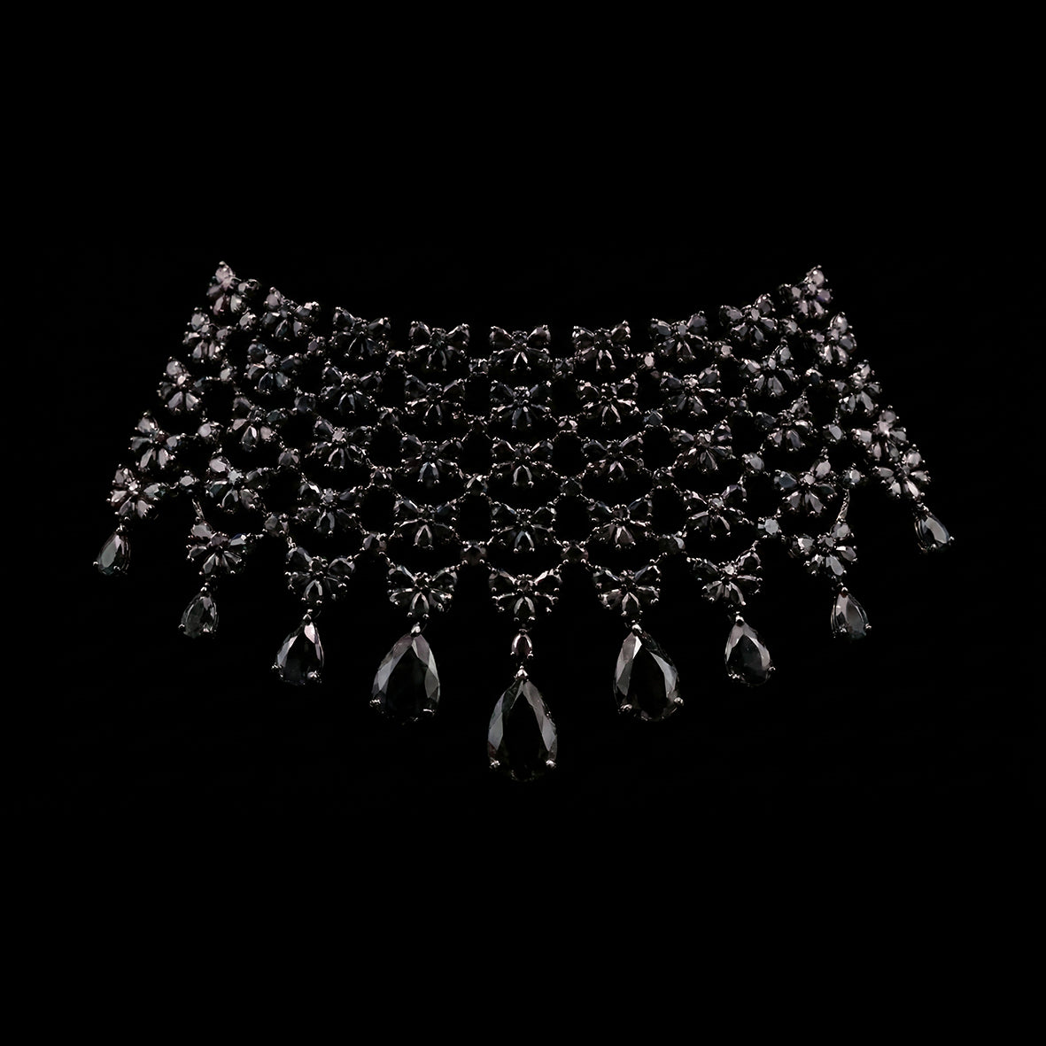 Black rhodium vermeil with 511 marquise, pear and round brilliant cut laboratory-grown simulated black diamonds totalling 198.7cts.