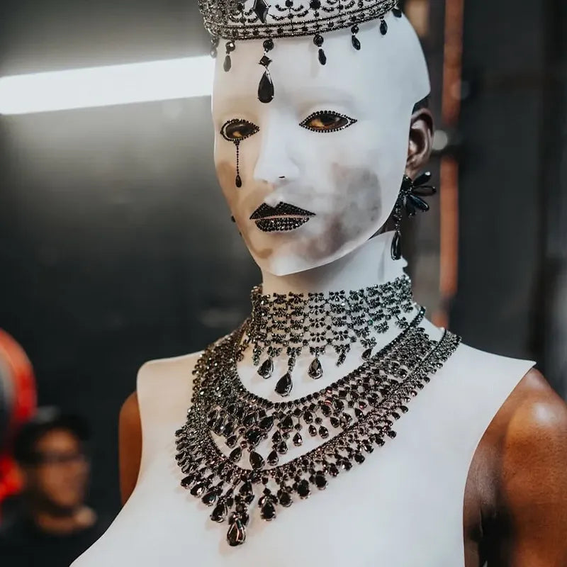 Black rhodium vermeil, 14k gold earring posts with 28 pear, oval, trillion and round brilliant cut laboratory-grown simulated black diamonds totalling 20cts.