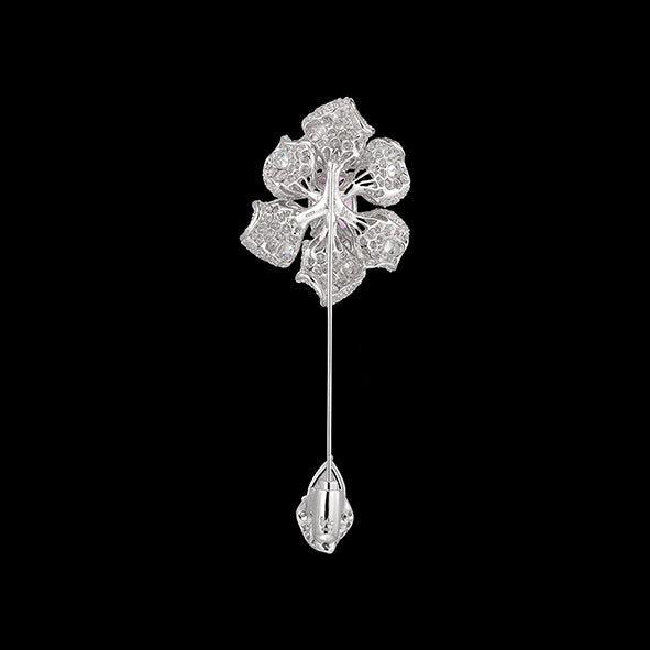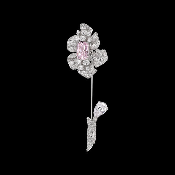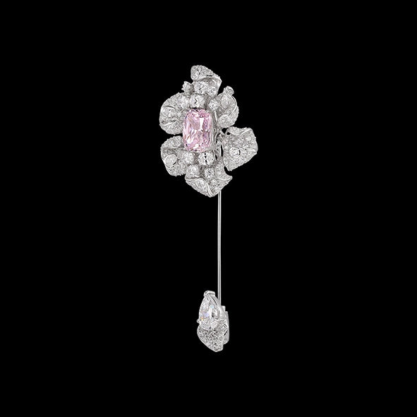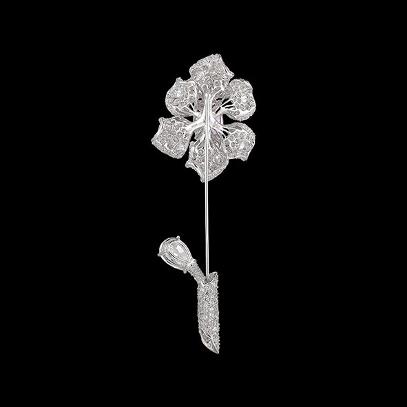 The Canary Fleurs D'Elixir Brooch is a timeless jewel handcrafted with with laboratory-grown simulated blush and white diamonds of the highest brilliance, set in a sinuous branch of rhodium vermeil.