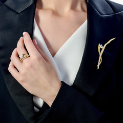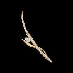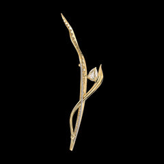 A delicate brooch in 18k yellow gold vermeil, hand-set with laboratory-grown simulated white diamonds.