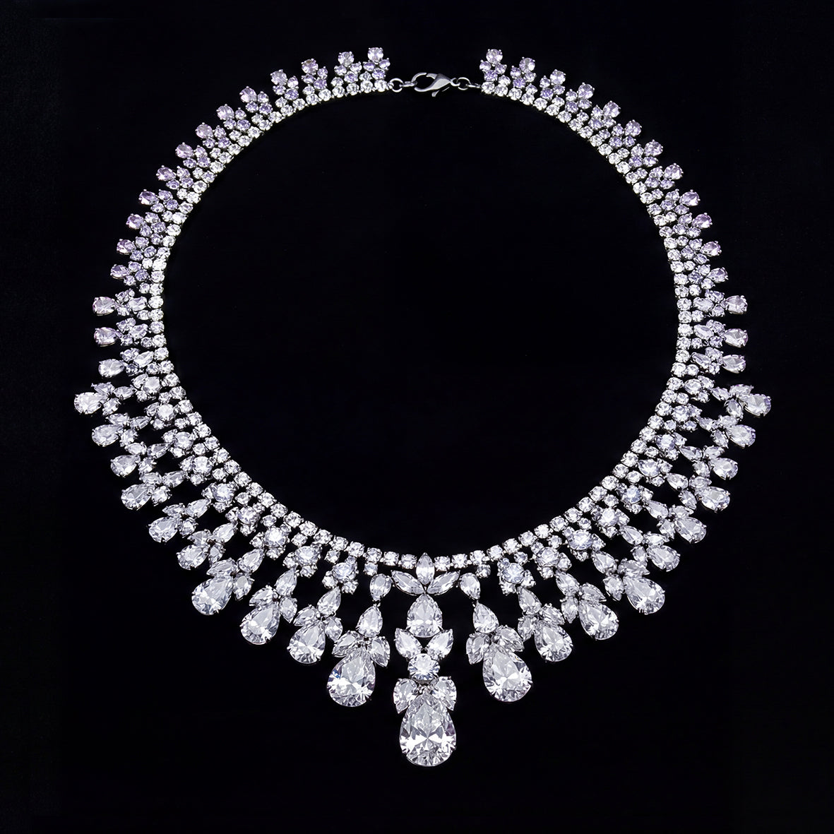 A statement choker crafted from rhodium vermeil, hand-set with an array of 533 pear, marquise and round brilliant cut laboratory-grown simulated white diamonds totalling 452.8cts.