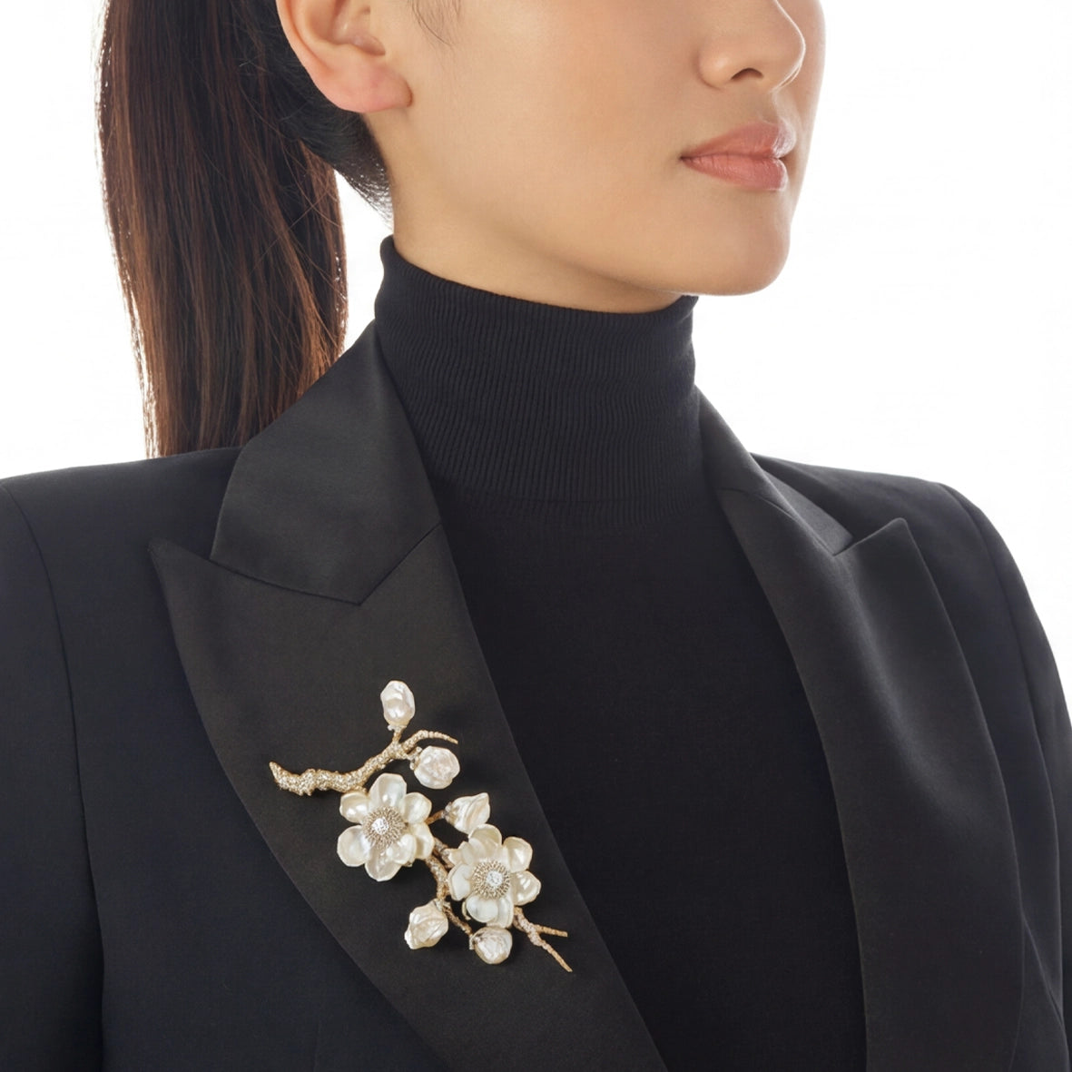 18k yellow gold vermeil with laboratory-grown simulated white diamonds and freshwater pearls