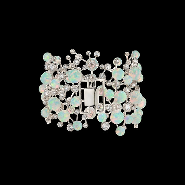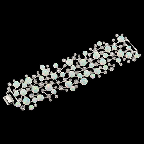 Rhodium vermeil with laboratory-grown opals and simulated white diamonds