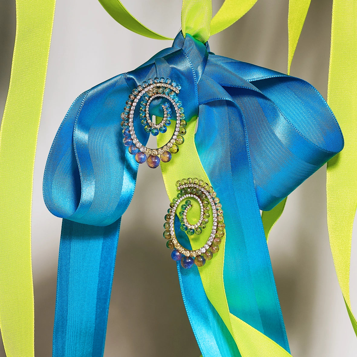 The Petite Fruit Punch Vortex Earrings are handcrafted with our signature laboratory-grown Fruit Gems™ in Blue & Green Spirulina, Purple Sweet Potato, Butterfly Pea Flower, Blueberry, Dragonfruit and Regenerative-Amber, accented with simulated white and canary diamonds.