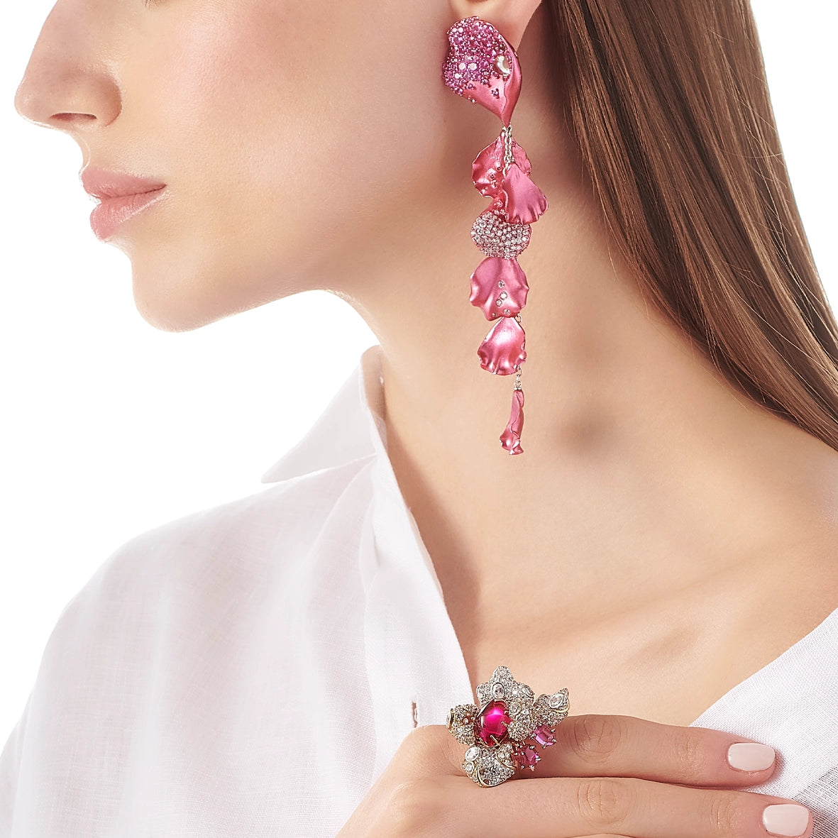 A signature design, the diamonds are set in 360 degrees around the flower to a dramatic effect; this ring is a beautiful work of art that can be admired from all angles. It is a jewel hand-crafted with the highest level of craftsmanship.